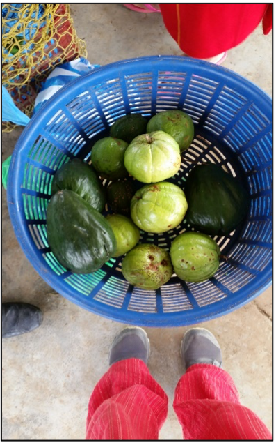 Experimenting with seeds and evolving tastes, global processes also shape life within the Ixil milpa. Mobility and migration—driven by persistent inequality that forces Guatemalans (U.S. Customs and Border Protection [2024]) and Maya Ixil to the Global North (Heidbrink, Batz, & Sánchez, 2021)—carries seeds across lands, inspiring new assemblages through this assisted exchange. At the Tzalval Mercado on November 6, 2019, I noticed an unusual fruit in a basket of native güisquil vegetables (Figure 5). Pale green but distinct in shape and texture, it was identified by a young woman with a baby on her hip as a guava variety originating in the US. Her father had collected and mailed the seed from there, and it now grew in Nebaj’s Xemamatze village. Initially unfamiliar, she described its taste as pleasantly sweet, adding that the plant had adapted well to the Ixil region’s tierra templada climate. Through such experimentation, Ixil families expand biodiversity and strengthen food and seed sovereignty. Mediated by the evolving tastes of those who cultivate and exchange new varieties, Ixil initiatives like the Mercado continue to evolve, materializing new biodiversity combinations along the tiichajil pathway.
