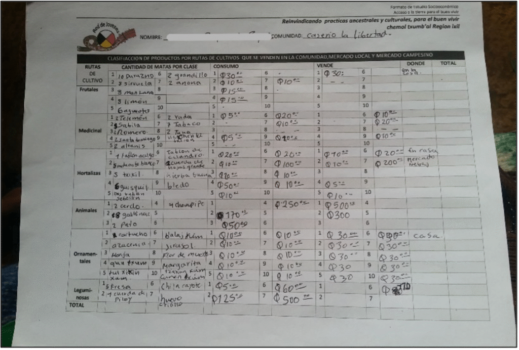 Doña Reza, a regular market participant for four years, focuses her efforts on a single site where she sells traditional staples like ayote, supplemented with produce specific to her microclimate. Her colleague, Doña Caban, attends at least one Mercado weekly, earning a modest income from her diverse offerings. At each market, she says she regularly brings “medicinal plants, leaves for tamales, sometimes cilantro, turnip, herbs, aloe vera plant, chile Chamborone, cepaiche [tomate de palo] […] I try to carry a little bit of an assortment.… always my sales bring 100, 150, or 200 Quetzales per market visit.” (US$13-26). Most of her income goes toward family essentials like sugar and her husband’s medication. Surveys from the youth group Red de Jovenes confirm similar earnings among participating campesinxs across the region (Figure 6).