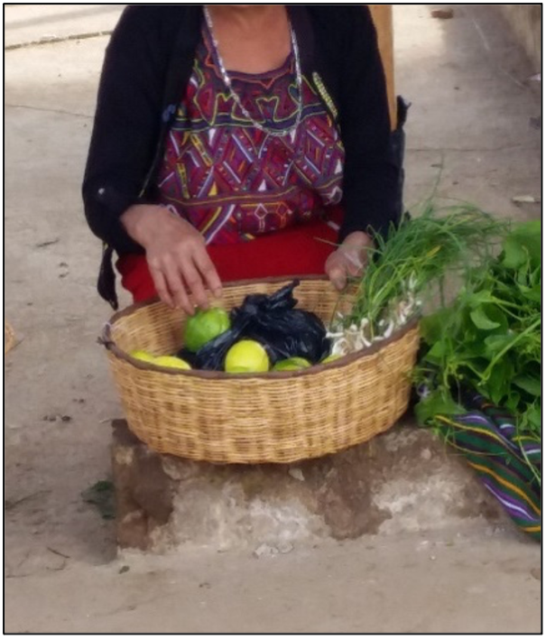 During a visit to the Tzalbal Mercado on November 6, 2019, Christopher and I met a woman known across the Ixil municipalities for her ‘caña‘[36] baskets, woven from native grass found high in the Ixil mountains. Because the Mercados prohibit plastic bags, following the lead of Maya neighbors in Sololá who initiated a similar environmental restoration initiative (May, 2021), many families commission her baskets in various sizes for different uses. She explained that she produces many of them during the religious week of Semana Santa in March or April, and receives steady orders through the year through word-of-mouth as the Tzalbal Mercado grows.