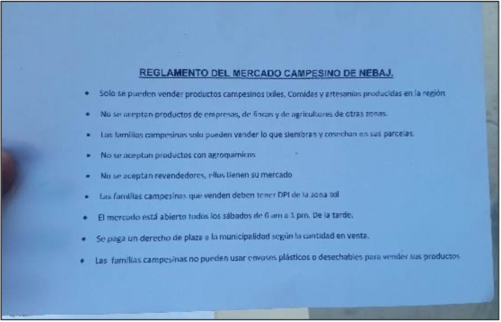 However, her production depends on the plant’s seasonal availability; she must walk several days to harvest it. The grass’ location remains a closely guarded secret to allow its natural regeneration each year. Her practice reflects txaa[37], Ixil cultural regulations rooted in ancestral knowledge and multispecies conservation that extend beyond the milpa. Ixil knowledge systems safeguard biodiversity through these ethical norms or ‘laws’, which govern relationships among humans and other species after centuries of co-evolution. The Ixil initiatives incorporate this framework of ‘laws’ into their design, requiring campesinxs to follow them to participate. Christopher often emphasized a rule established with the Nebaj Mercado: “People have heard that there is a market here [but] there are regulations. They are welcome here, but without chemicals.[38] This is the regulation, otherwise [they cannot sell their goods here].”